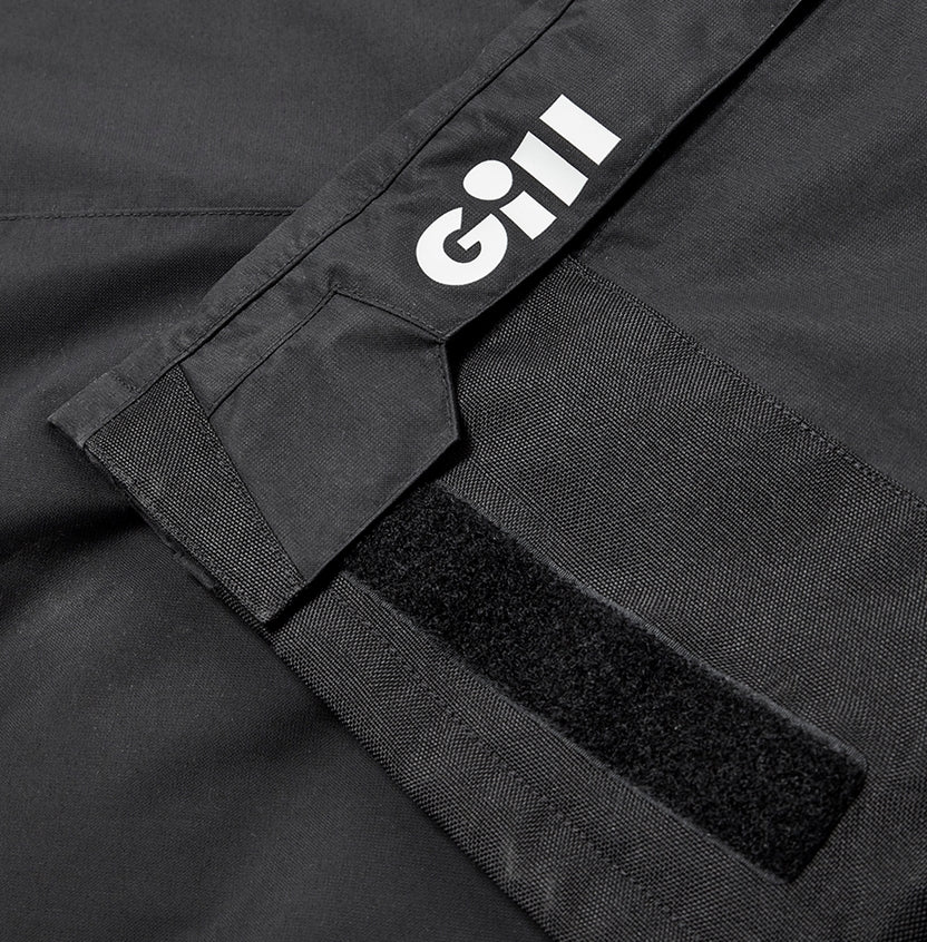 Storm guard. Large chest pocket. Abrasion resistant knees.