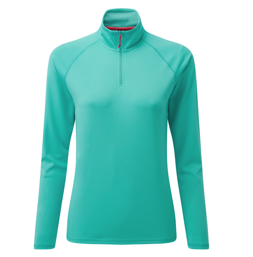 The women's Long Sleeve Zip Neck T-Shirt dries quickly and wicks moisture away from the skin, ideal when venturing out on the water this season. The high protective collar and 50+ UV blocking capabilities ensures you're protected, whilst the flat locked seams and ultra lightweight material delivers comfort throughout.